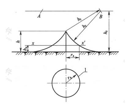 4)接閃桿在hx高度的平面上和地面上的保護半徑,應按下列公式計算: