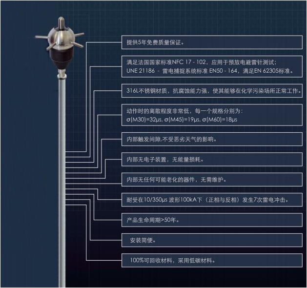IONIFLASH MACH能夠抵御所有極性的雷擊,其內部觸發(fā)電極通過大氣感應的電壓差可靠動作。