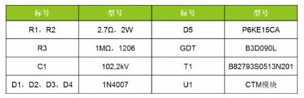 其中GDT置于最前端,提供一級防護(hù),當(dāng)雷擊、浪涌產(chǎn)生時(shí),GDT瞬間達(dá)到低阻狀態(tài),為瞬時(shí)大電流提供泄放通道,將CAN_H、CAN_L間電壓鉗制在二十幾伏范圍內(nèi)。實(shí)際取值可根據(jù)防護(hù)等級及器件成本綜合考慮進(jìn)行調(diào)整,R3與R4建議選用PTC,D1~D6建議選用快恢復(fù)二極管。參數(shù)表如下
